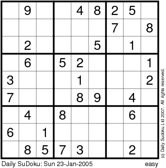 The Daily SuDoku: Sun 23-Jan-2005
