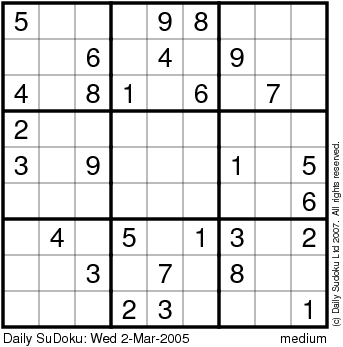 The Daily SuDoku: Wed 2-Mar-2005