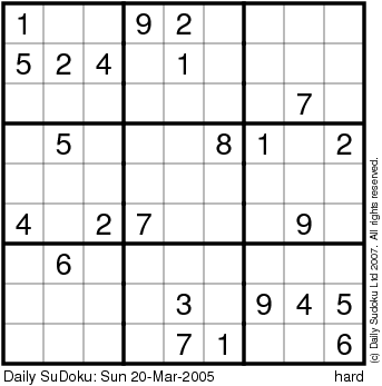 The Daily SuDoku: Sun 20-Mar-2005