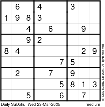 The Daily SuDoku: Wed 23-Mar-2005