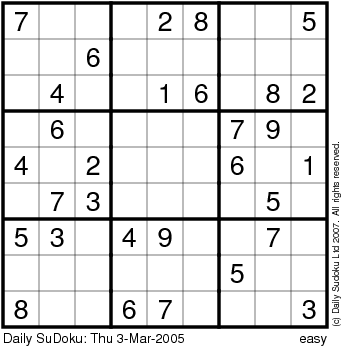 The Daily SuDoku: Thu 3-Mar-2005