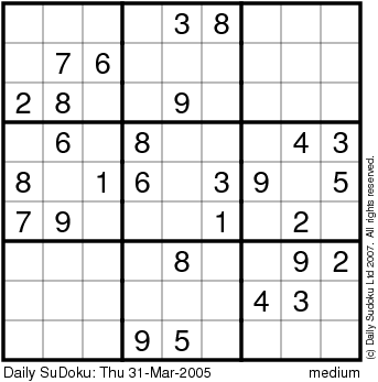 The Daily SuDoku: Thu 31-Mar-2005