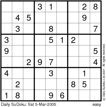 The Daily SuDoku: Sat 5-Mar-2005