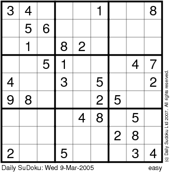 The Daily SuDoku: Wed 9-Mar-2005