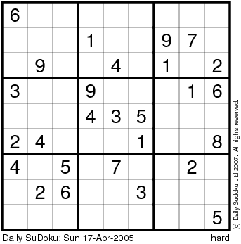 The Daily SuDoku: Sun 17-Apr-2005