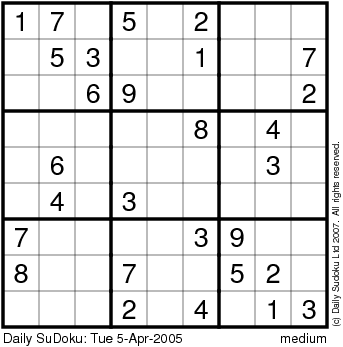 The Daily SuDoku: Tue 5-Apr-2005