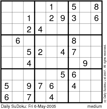 The Daily SuDoku: Fri 6-May-2005