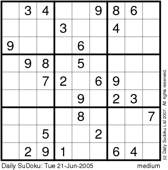 The Daily SuDoku: Tue 21-Jun-2005