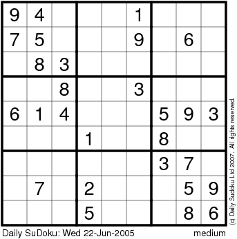 The Daily SuDoku: Wed 22-Jun-2005