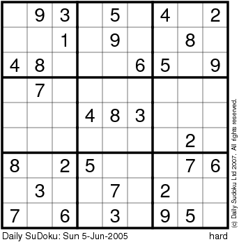 The Daily SuDoku: Sun 5-Jun-2005