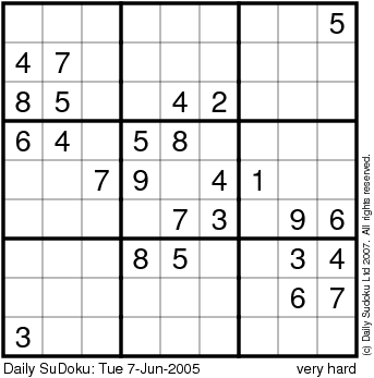 The Daily SuDoku: Tue 7-Jun-2005