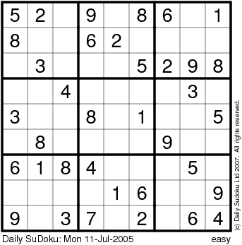 The Daily SuDoku: Mon 11-Jul-2005
