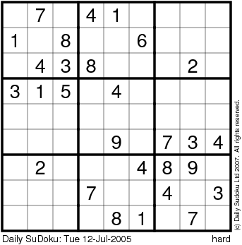 The Daily SuDoku: Tue 12-Jul-2005