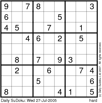 The Daily SuDoku: Wed 27-Jul-2005