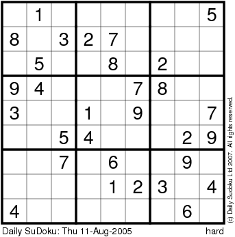 The Daily SuDoku: Thu 11-Aug-2005