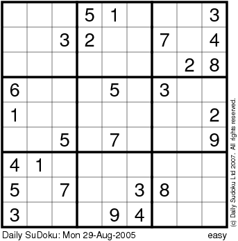 The Daily SuDoku: Mon 29-Aug-2005