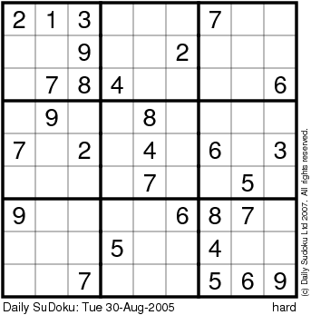 The Daily SuDoku: Tue 30-Aug-2005