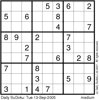 The Daily SuDoku: Tue 13-Sep-2005