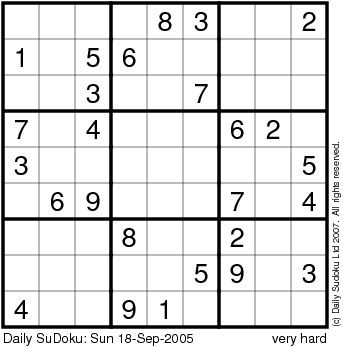 The Daily SuDoku: Sun 18-Sep-2005