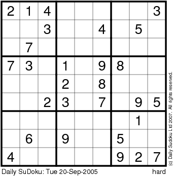 The Daily SuDoku: Tue 20-Sep-2005