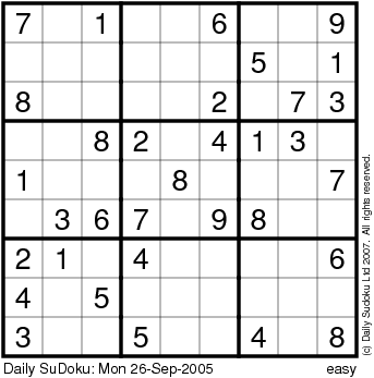 The Daily SuDoku: Mon 26-Sep-2005