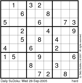 The Daily SuDoku: Wed 28-Sep-2005