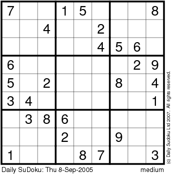 The Daily SuDoku: Thu 8-Sep-2005