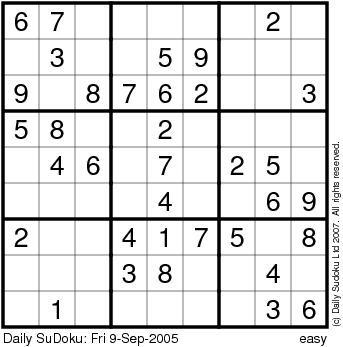 The Daily SuDoku: Fri 9-Sep-2005