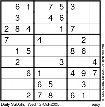 The Daily SuDoku: Wed 12-Oct-2005