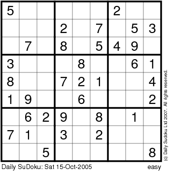 The Daily SuDoku: Sat 15-Oct-2005