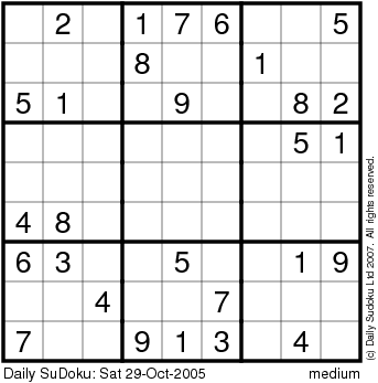 The Daily SuDoku: Sat 29-Oct-2005