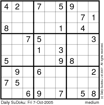 The Daily SuDoku: Fri 7-Oct-2005