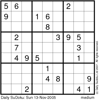 The Daily SuDoku: Sun 13-Nov-2005