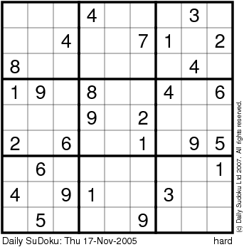 The Daily SuDoku: Thu 17-Nov-2005