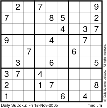 The Daily SuDoku: Fri 18-Nov-2005
