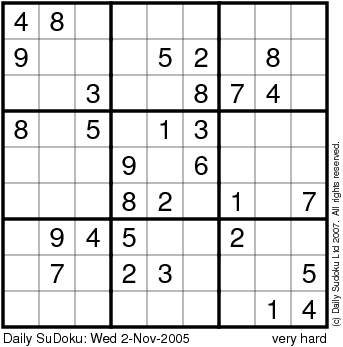 The Daily SuDoku: Wed 2-Nov-2005