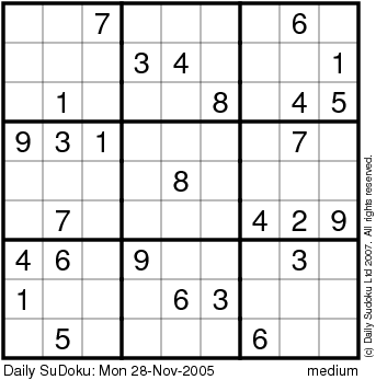 The Daily SuDoku: Mon 28-Nov-2005