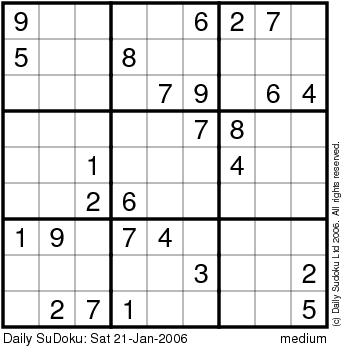 The Daily SuDoku: Sat 21-Jan-2006