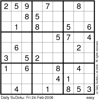 The Daily SuDoku: Fri 24-Feb-2006