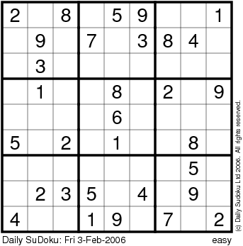 The Daily SuDoku: Fri 3-Feb-2006