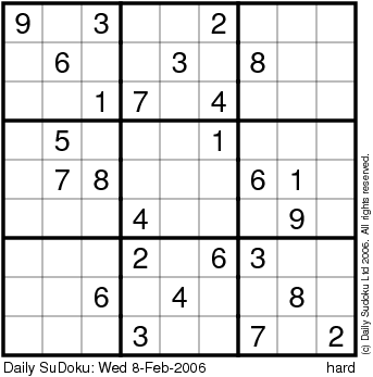 The Daily SuDoku: Wed 8-Feb-2006