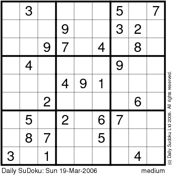 The Daily SuDoku: Sun 19-Mar-2006