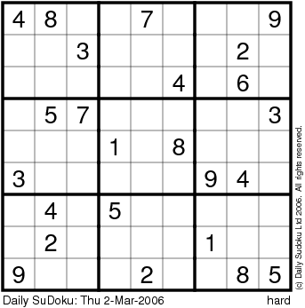 The Daily SuDoku: Thu 2-Mar-2006