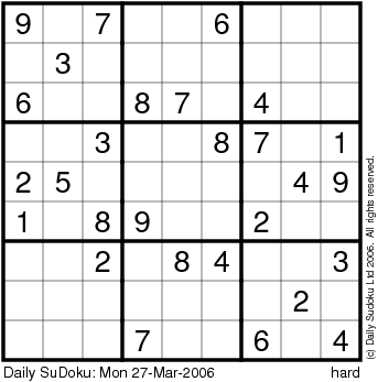 The Daily SuDoku: Mon 27-Mar-2006