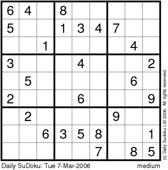 The Daily SuDoku: Tue 7-Mar-2006