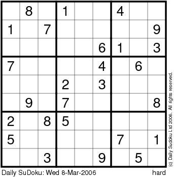 The Daily SuDoku: Wed 8-Mar-2006