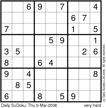 The Daily SuDoku: Thu 9-Mar-2006