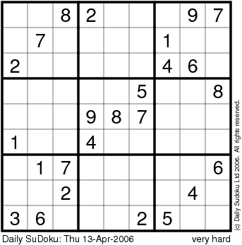 The Daily SuDoku: Thu 13-Apr-2006