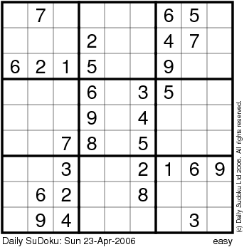 The Daily SuDoku: Sun 23-Apr-2006