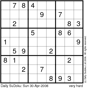 The Daily SuDoku: Sun 30-Apr-2006